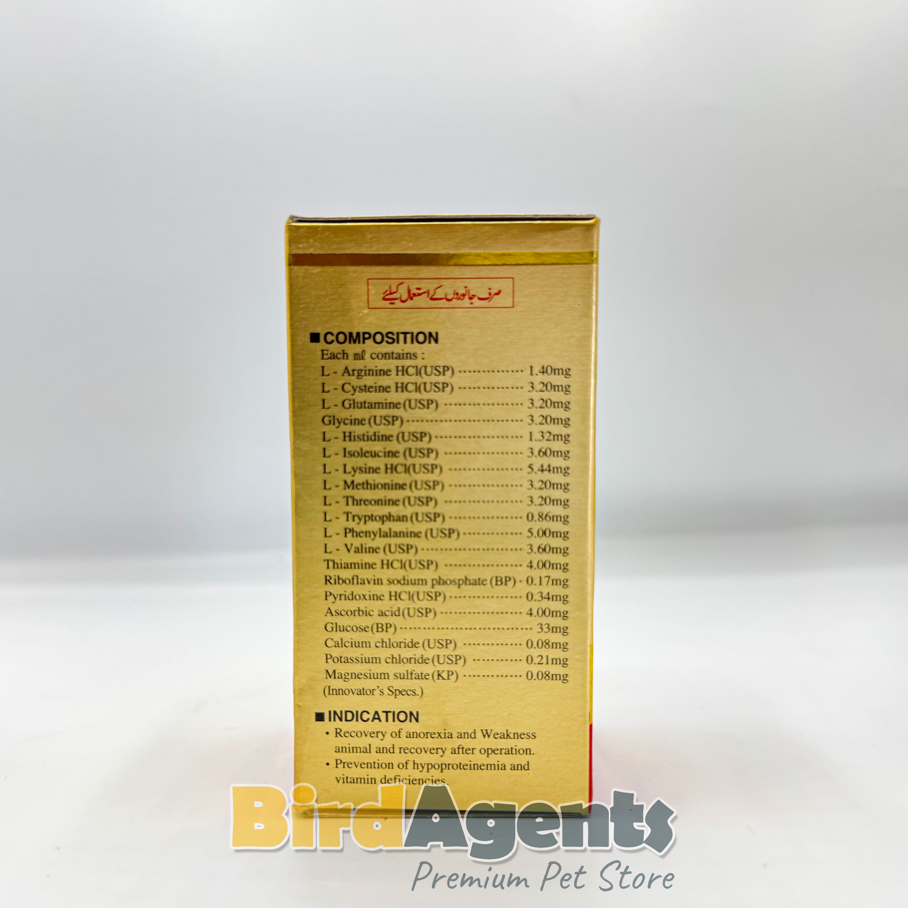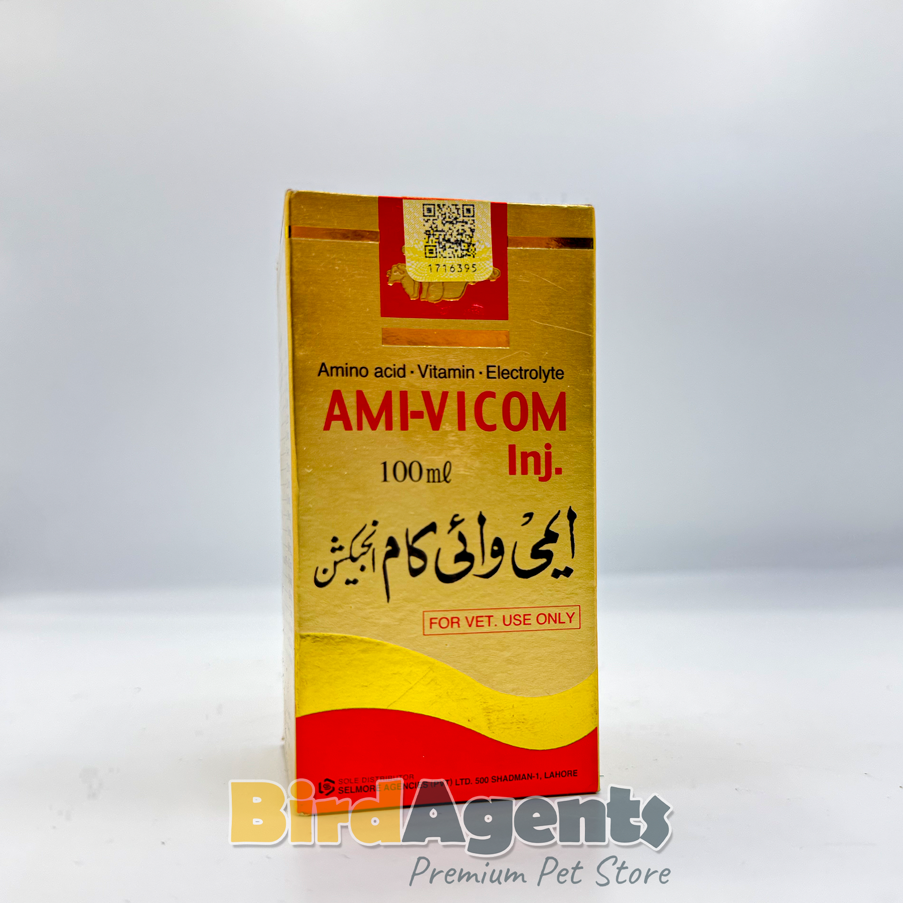 Ami-Vicom is a high-quality injectable formulation enriched with essential amino acids, vitamins, and electrolytes. It helps restore energy, vitality, and metabolic balance in poultry and livestock, especially during stress, disease, or nutritional deficiency. Its rapid-acting formula promotes faster recovery, improved stamina, and enhanced productivity.