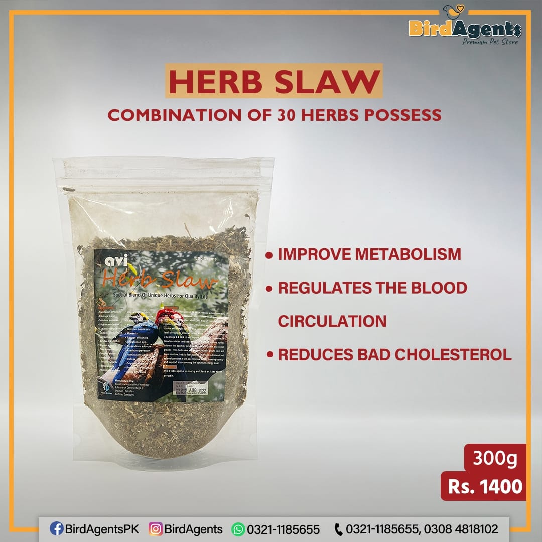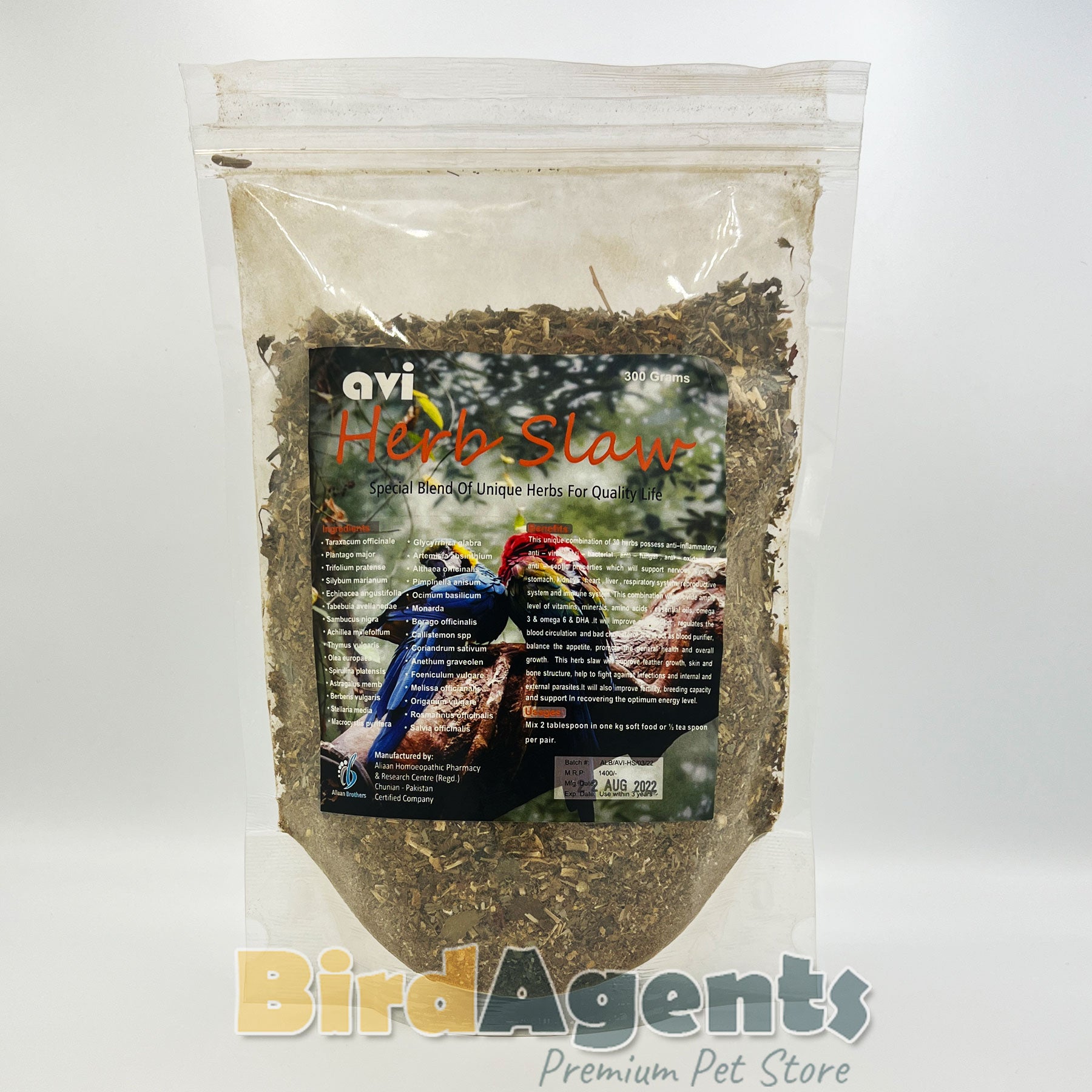The Avi Herb Slaw a comprehensive supplement for birds, offering a wide range of health benefits due to its blend of 30 herbs. Here's a summary of its purported benefits and usage: