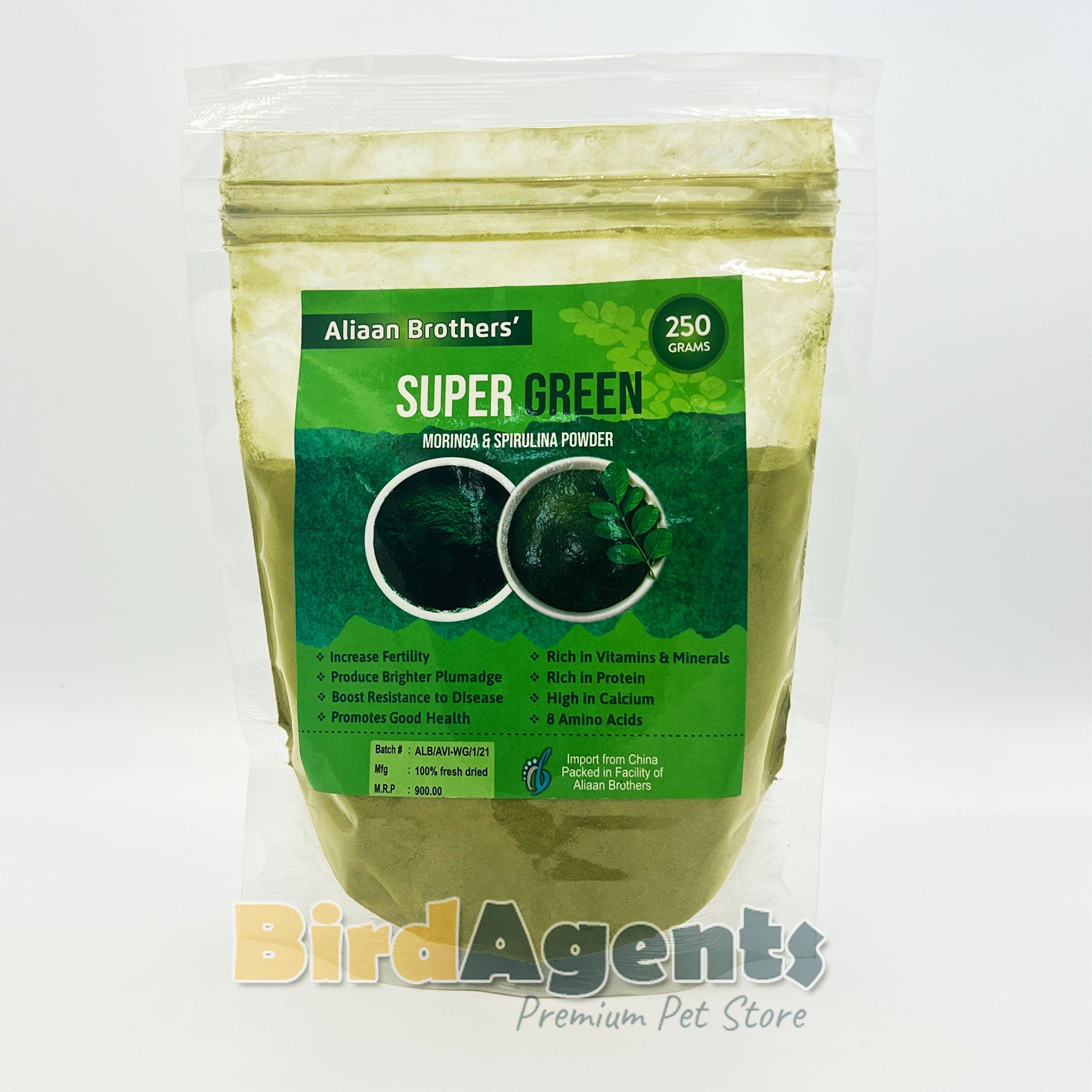 Description: Avi Super Green is a premium blend of Moringa and Spirulina powder formulated for birds, designed to enhance overall health and vitality.