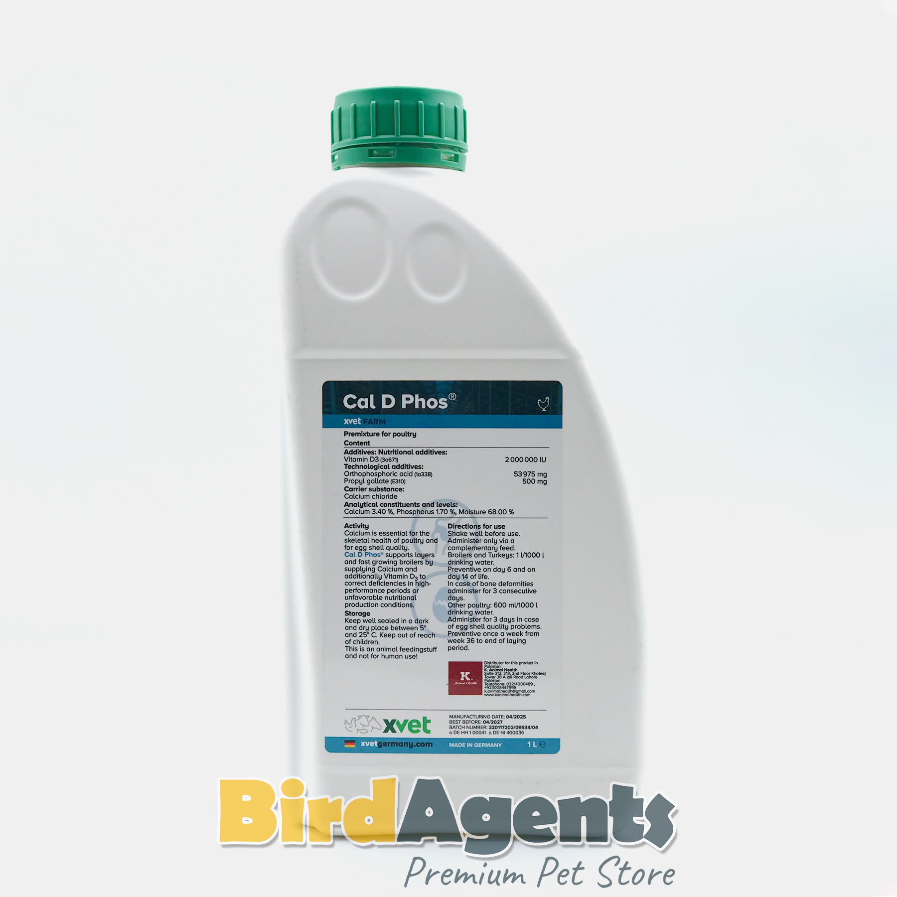 Cal D Phos is a premium liquid calcium and vitamin D₃ supplement designed to promote strong bones, proper eggshell formation, and overall skeletal health in birds. It provides an ideal balance of calcium and phosphorus, ensuring better absorption and utilization during breeding, growth, and recovery periods.