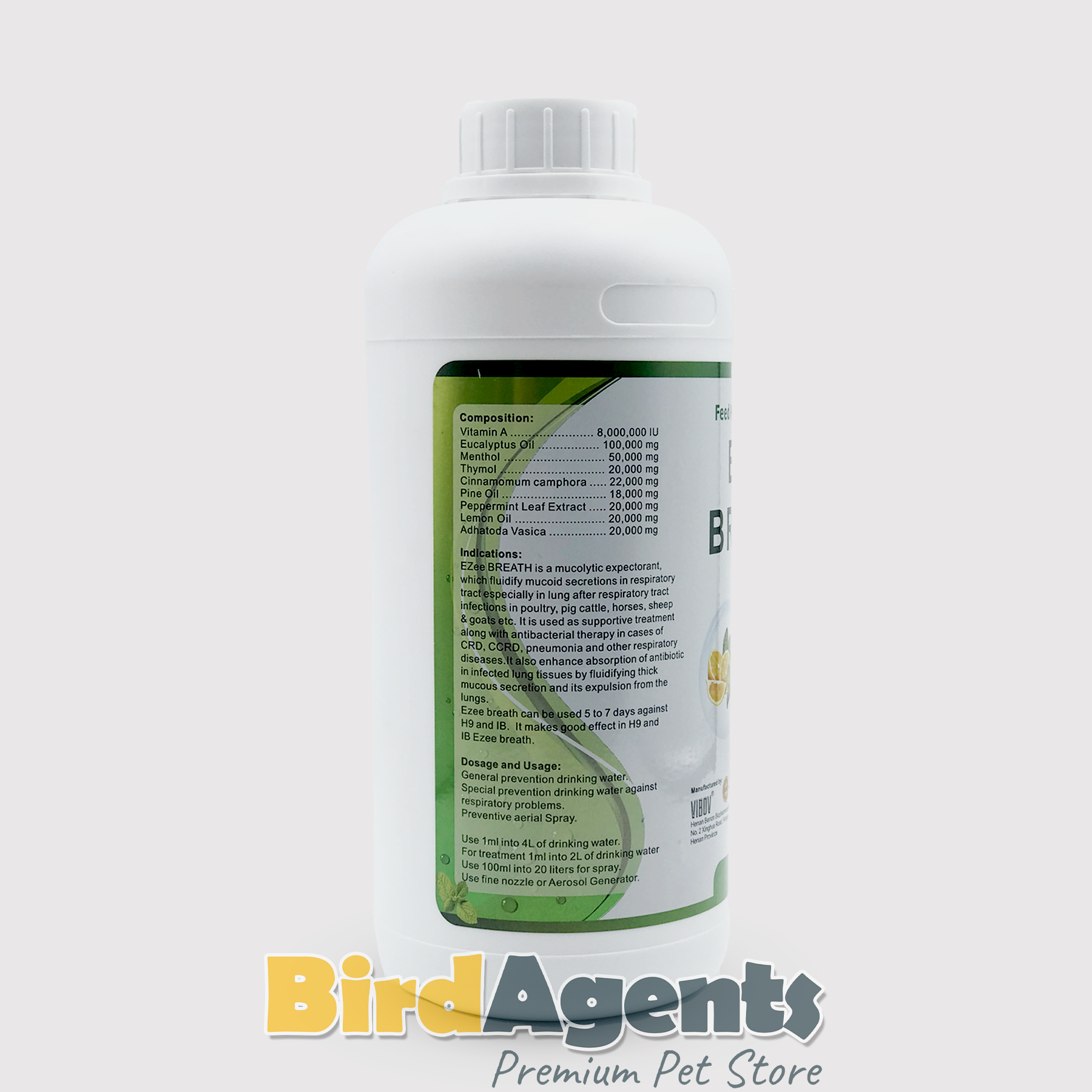 EZee Breath works by gently thinning and removing mucus from the respiratory tract, allowing birds to breathe comfortably and recover faster. Its combination of eucalyptus oil, menthol, thymol, plant extracts, and Vitamin A provides strong natural respiratory relief while supporting immunity and lung function.
