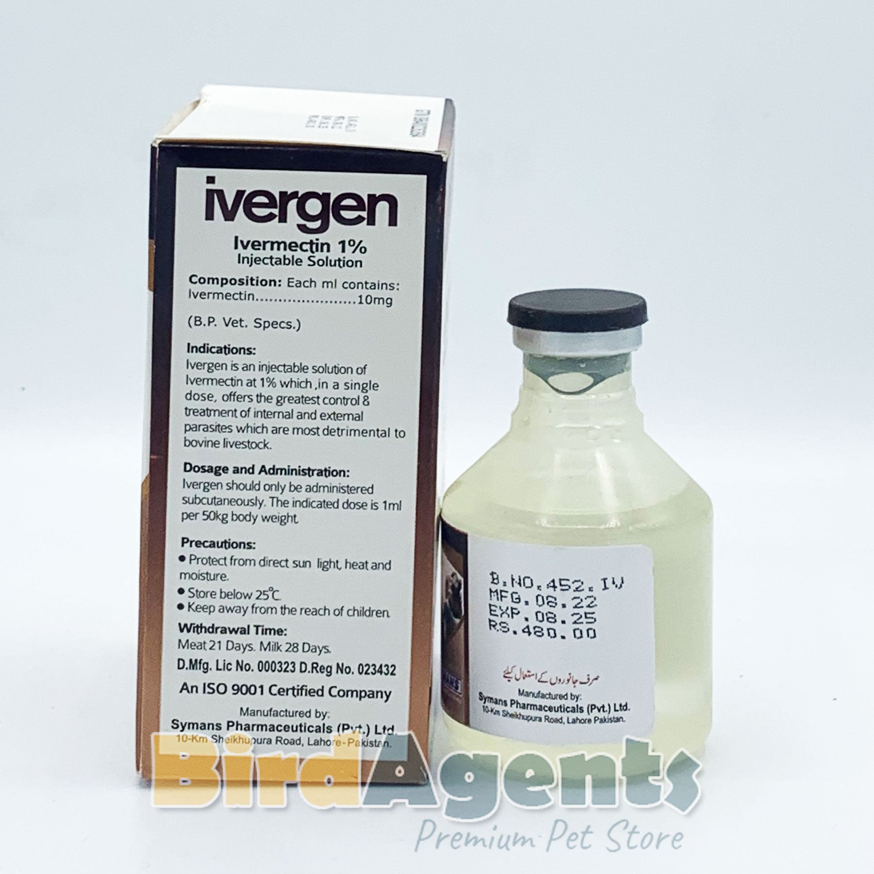 Description: Symans IVERGEN 1% is an injectable solution containing Ivermectin at a concentration of 10mg/ml. It is specifically formulated for the control and treatment of internal and external parasites in bovine livestock.