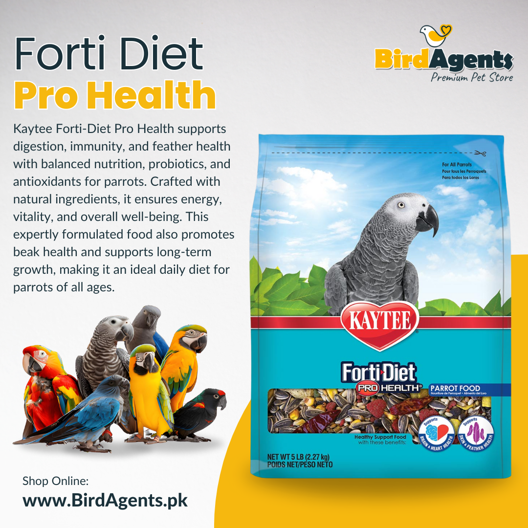 Kaytee Forti-Diet Pro Health Parrot Food is a comprehensive, nutrient-rich diet designed to ensure your parrot thrives with optimal health and vitality.