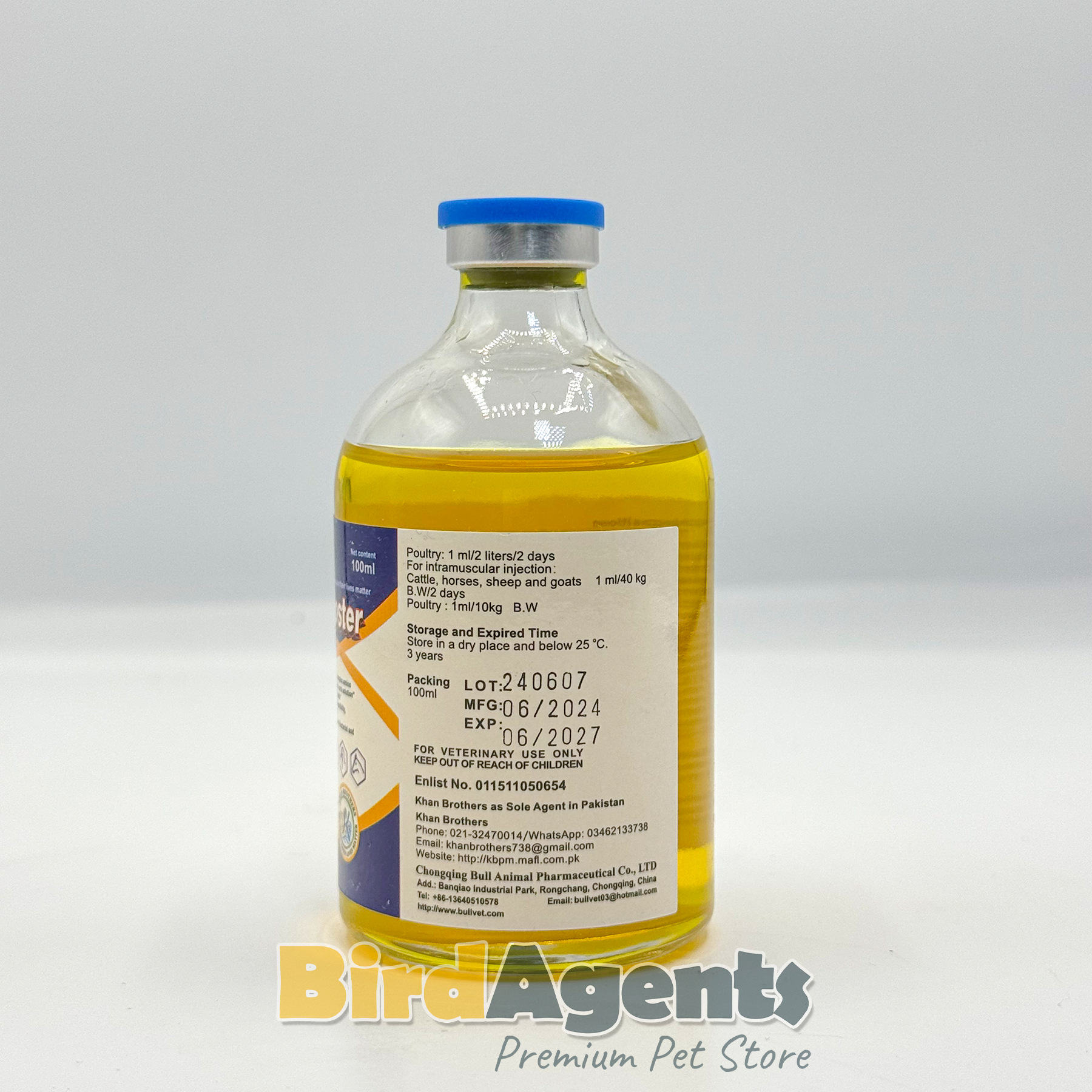 Pigeons: 1 ml per 10 kg body weight (can also be given via drinking water)