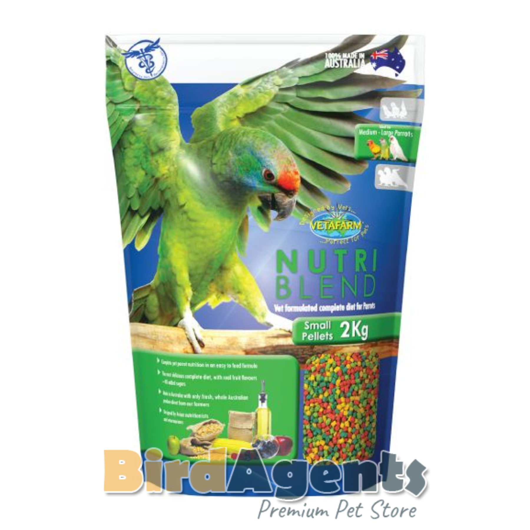 Vetafarm Nutriblend Small Pellets are a complete and balanced daily diet for parrots, formulated by avian veterinarians.