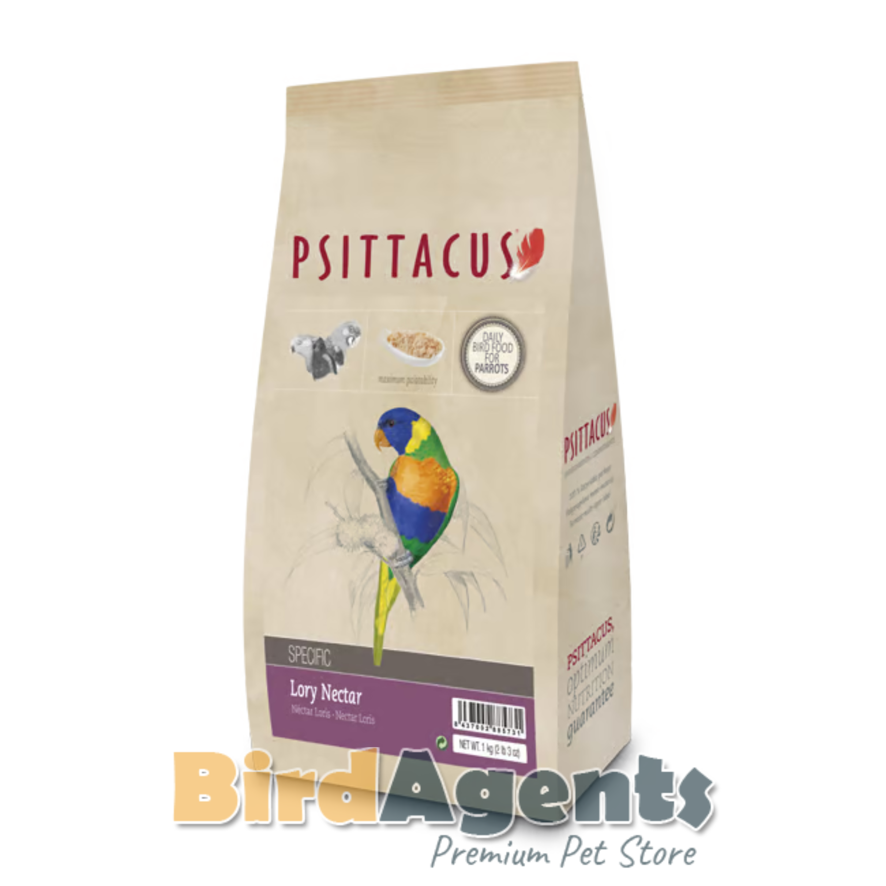 Psittacus Lory Nectar is a complementary food product designed specifically for adult parrots of the subfamily Loriinae, including lories and lorikeets. It provides a diet rich in easily digestible ingredients with a high proportion of dried fruit and sugars, tailored to meet the dietary needs of these birds.