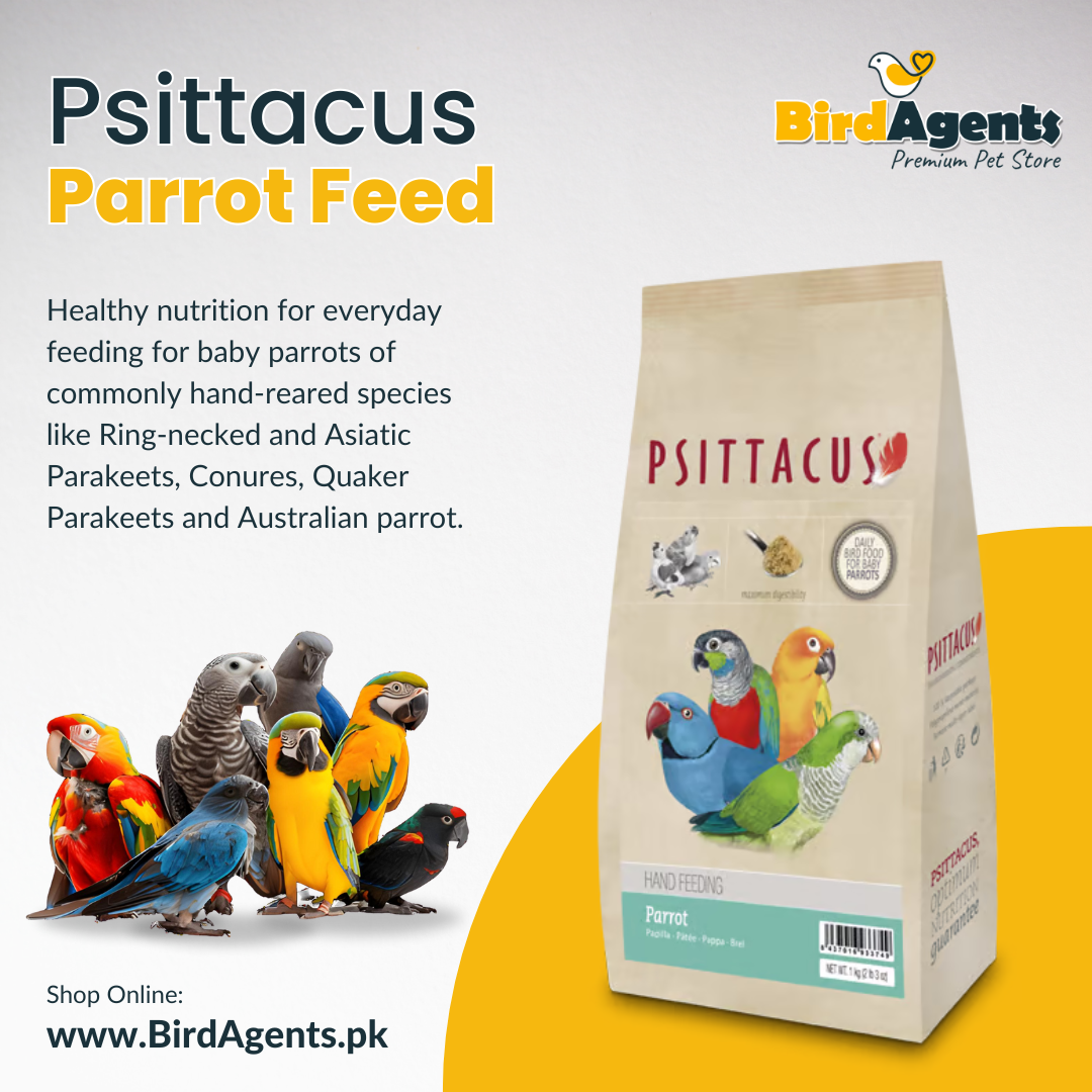 Psittacus Parrot Hand Feeding Formula is specifically designed for hand-rearing baby parrots of commonly hand-reared species, including Ring-necked and Asiatic Parakeets, Conures, Quaker Parakeets, and Australian parrots (except cockatoos).