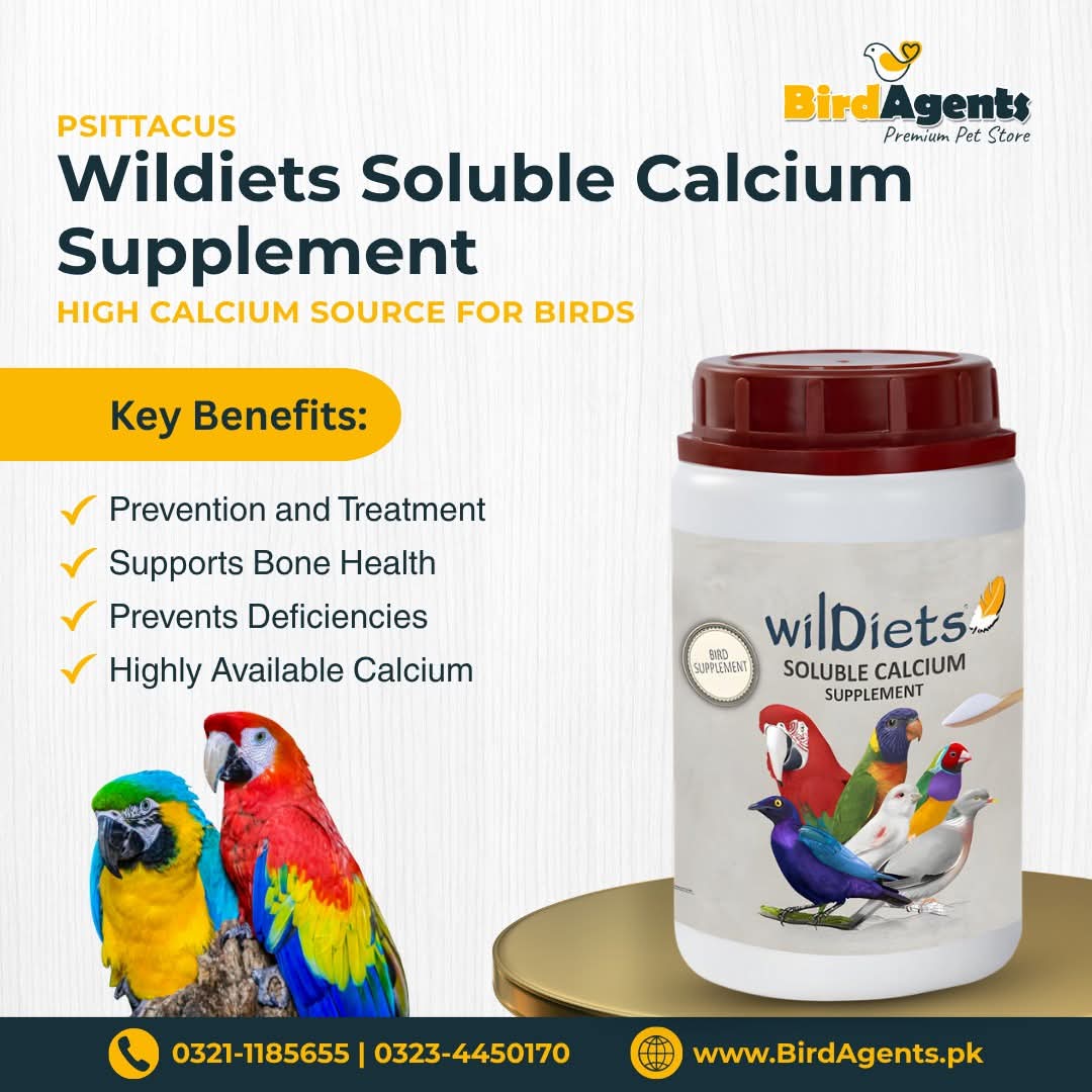 Wildiets Soluble Calcium Supplement is a reliable choice for maintaining your birds' calcium levels and supporting their overall health.