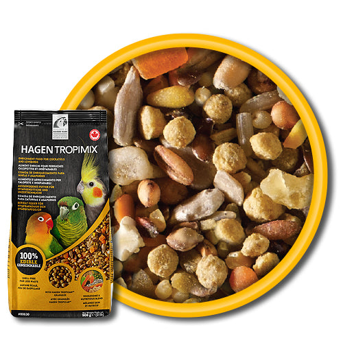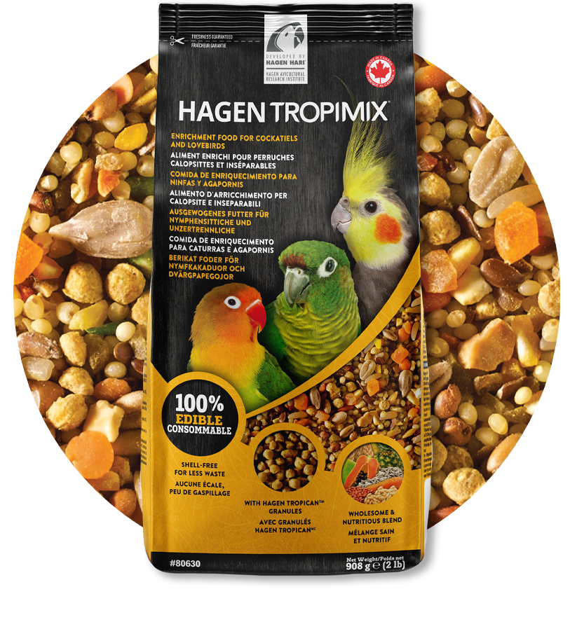 Tropimix provides a comprehensive diet that enhances the health and well-being of cockatiels and lovebirds by combining delicious ingredients with essential nutrients for a balanced and stimulating diet.