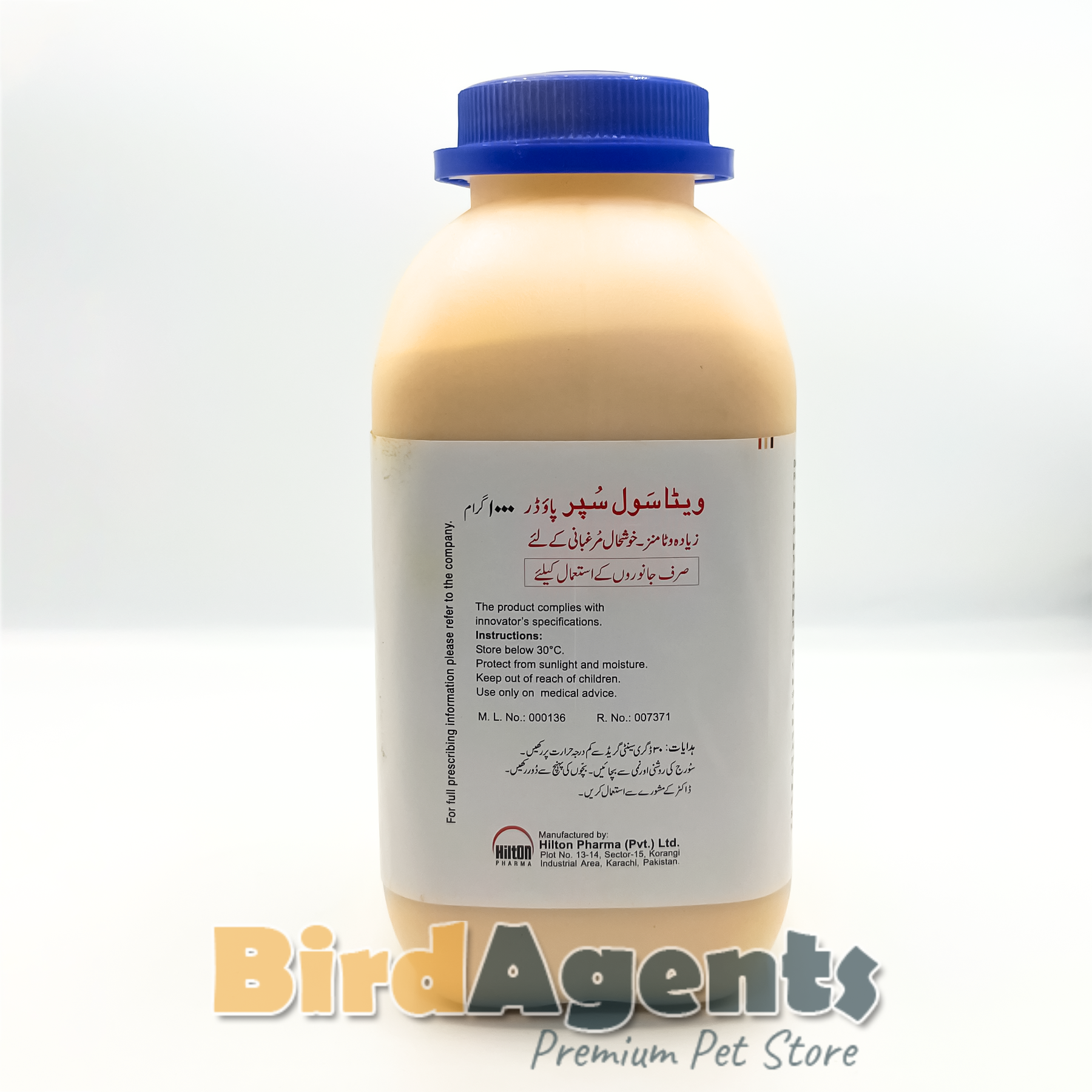 Vitasol Super Powder is a specially formulated multivitamin supplement designed to support poultry health, particularly in chicks during their early growth stages. It helps prevent and correct vitamin deficiencies while protecting birds from stress caused by vaccination, environmental changes, transportation, and medication.